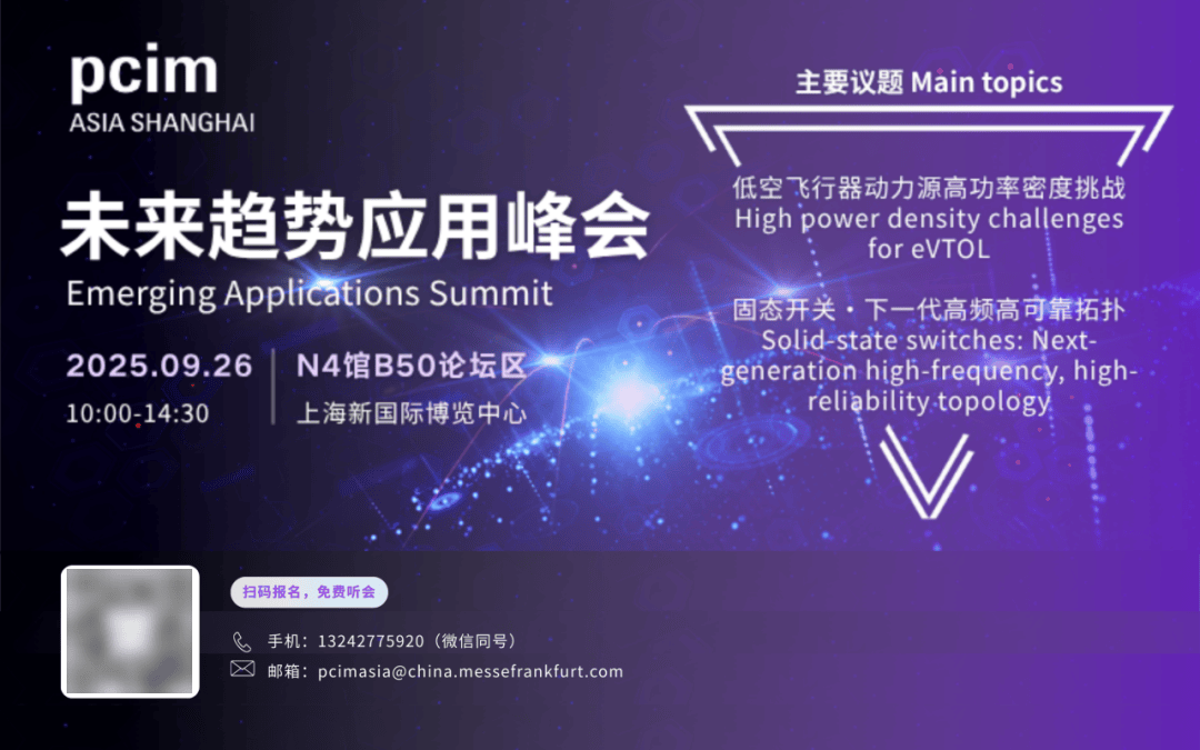 未来趋势应用峰会将聚焦低空飞行器动力源高功率密度挑战,固态开关——下一代高频高可靠拓扑两大主题,汇聚产学研用顶尖大脑,拆解未来电力电子的核心跃迁路径,共同洞察行业发展趋势。