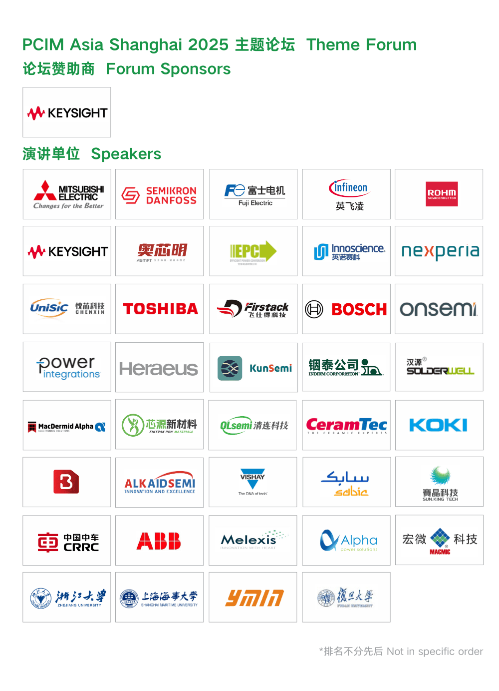 PCIM Asia Shanghai 2025 主题论坛将围绕“宽禁带半导体-碳化硅&氮化镓” “功率器件”“材料与封装”“电气化交通”“人工智能与数据中心”等技术话题开展为期两天的分享。